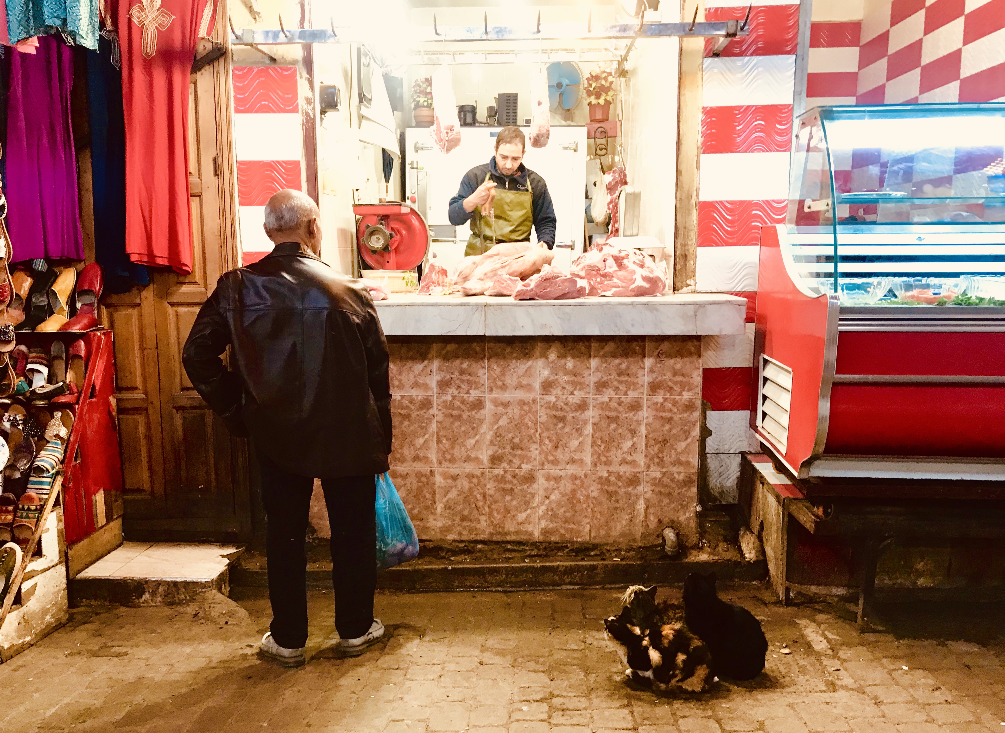 Moroccan Street Cats – While I didn’t have a cat to care for in the beautifully restored four level medina home I was sitting there were plenty of cats that called the Medina home in Fes where I was based and every city and town I visited. They were timid, talkative, fierce and friendly. Some had strategically secured a spot outside of the butchers or fishmongers, while others roamed the streets and alleys after dark fending for themselves and a few held spots high up over the tanneries. They would generally make a mess of things foraging for food and many wore a black spot on their nose, some of the leftovers from where they had poked their head the night before.