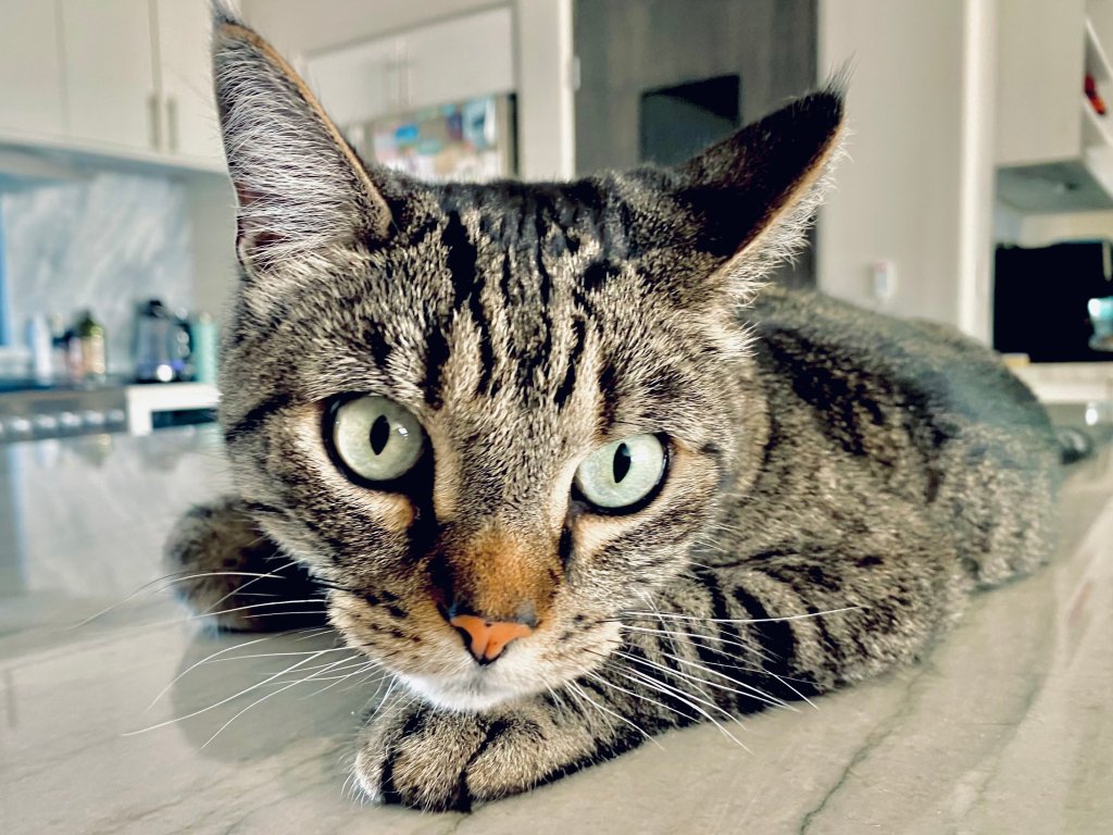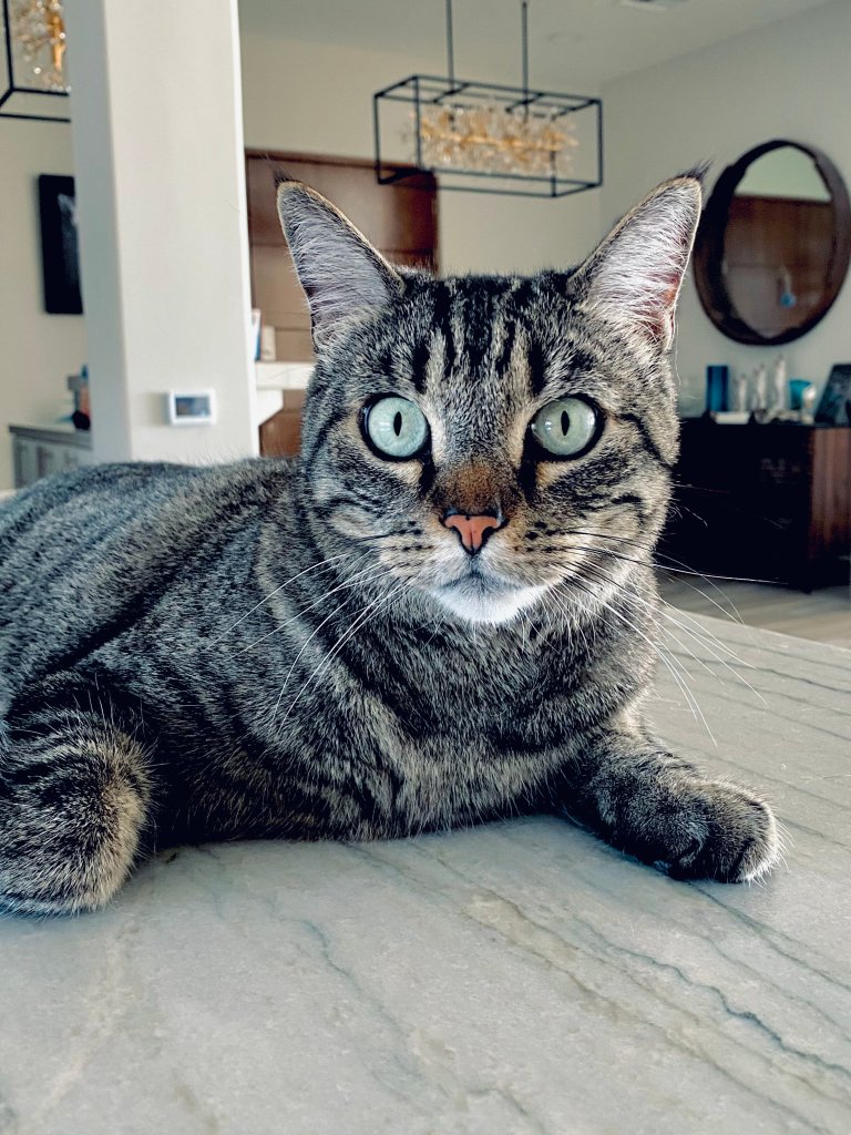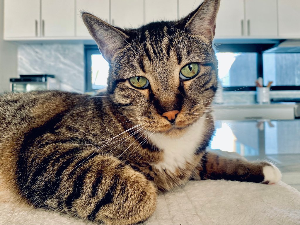 Kaya, the matriarch, presides over the household with calm authority. She’s the one who keeps everyone in order, but typically prefers a quiet cool corner or comfy bed to rest and observe. Her grumpy cat face is deceiving, because she loves to indulge in a morning cuddle.