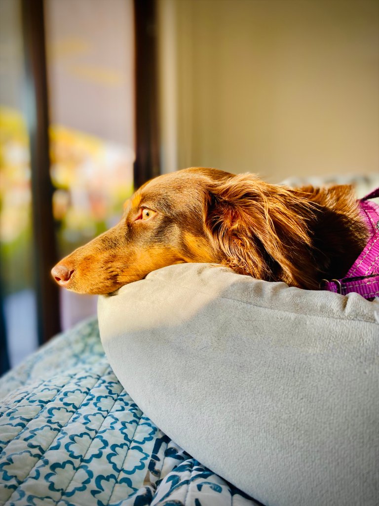 Our days are filled with early morning walks and peaceful sunset strolls, followed by couch cuddles and downtime together. Doug is the headstrong little troublemaker — full of cheek, and charm — while Tom is the serious big brother and the bossy boots of the pair. Their bond, their quirks, and their affection make them a joy to care for, and they truly feel like family.