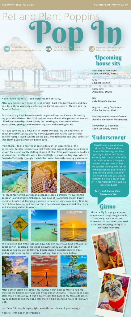 One of the functions of this newsletter is to communicate to home owners who have shown interest in my services or have a house sit booked with me. It is also intended to help those interested in or new to house sitting and answer questions for home owners and house sitters alike.