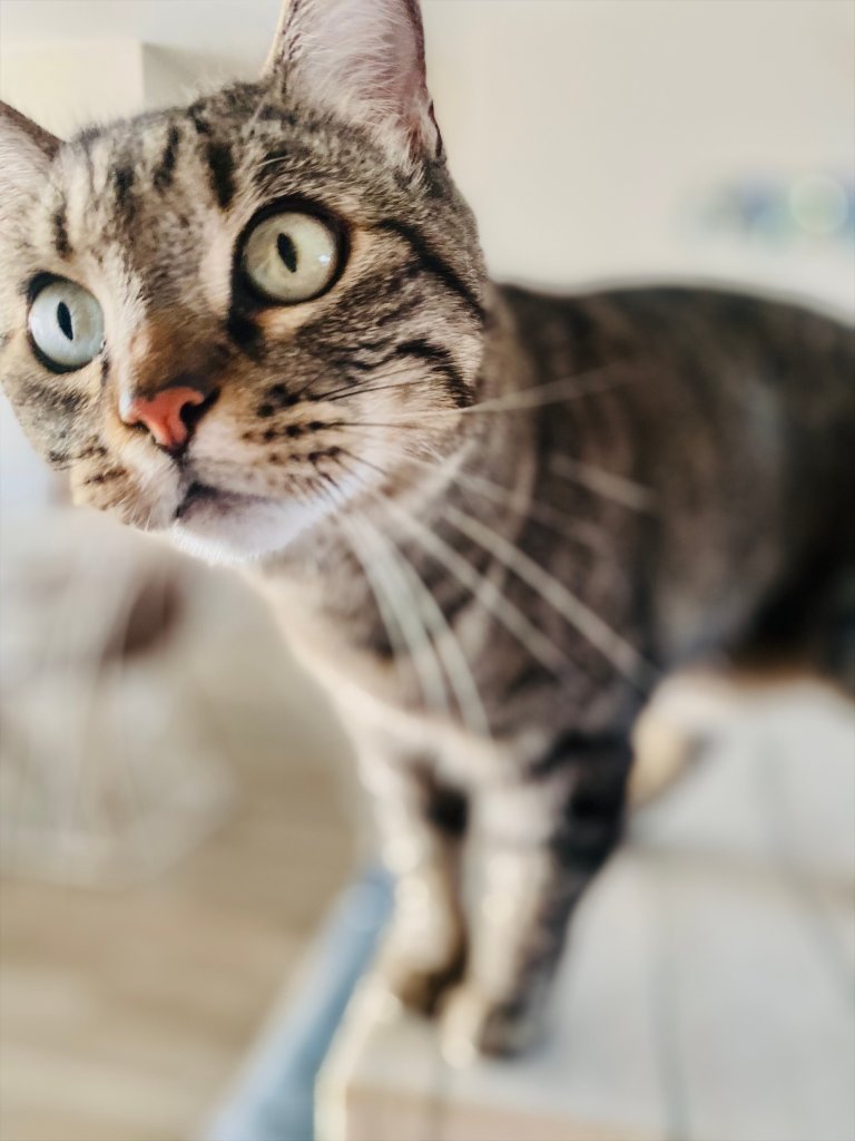 There is Bella, the only girl of the group and she is easy to identify with her big bootylicious curves, she is super cute and loves to steal a snuggle or two. Her brother Zutroy is a handsome cat that has the face of a little lion, he is a chilled out guy and prefers to find quiet spots and his own space. The baby of the bunch is Lencho, and he is the oddball! He’s always on the hunt, eternally alert and ready to jump to the rescue if a ball, bug or bright light appears!