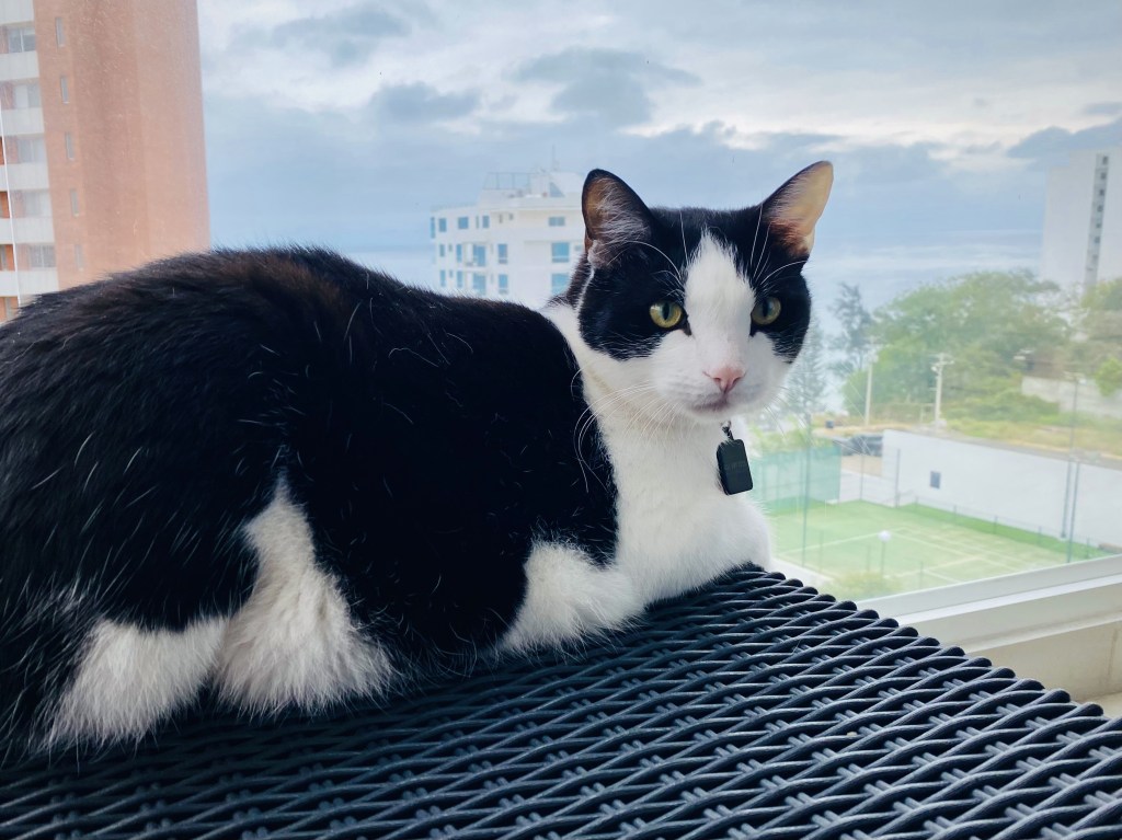 Harley and Quinn – I was asked to return to Manta on the coast of Ecuador to look after these two adorable big cats who may have even grown a bit since I was here earlier in the year! They also have moved into a new apartment and have a fantastic big balcony facing the ocean from which they can spy pelicans and seagulls, but while I was here this time they discovered huge fish and birds in the giant living room window!